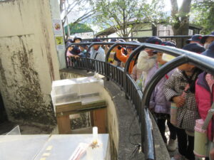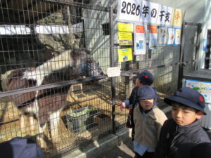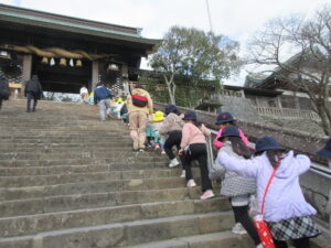 学校法人富士学園 認定こども園 > 最新情報 > 園ブログ > みかん組初詣みかん組初詣2026年1月9日2026年1月9日園ブログ9日(金)にみかん組は園バスで初詣に諏訪神社へ行ってきました🎍 長坂の階段をしっかりのぼって、、、 小学生になったらこんなことを頑張ります。こういう人になりたいです。などなど、自分たちの想いを神様に伝えました。 しっかりお祈りした後は、動物園に行きました🐎 きつねがいます🦊 今年はうま年ということで、馬がいました! ミーアキャット可愛いね 羽を広げて~~🦚 長崎公園でも楽しく遊びました! 神様に伝えた自分の想いを、叶えられるように頑張りましょうね!
