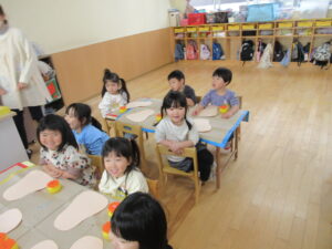 学校法人富士学園 認定こども園 > 最新情報 > 園ブログ > ある日の活動~りんご組ある日の活動~りんご組2026年1月19日2026年1月19日園ブログ1月の製作でりんご組が、福笑いの製作をしていたので、ご紹介します。 先生の話をよく聞いています(*^^*) 楽しい作品が出来上がりました✨