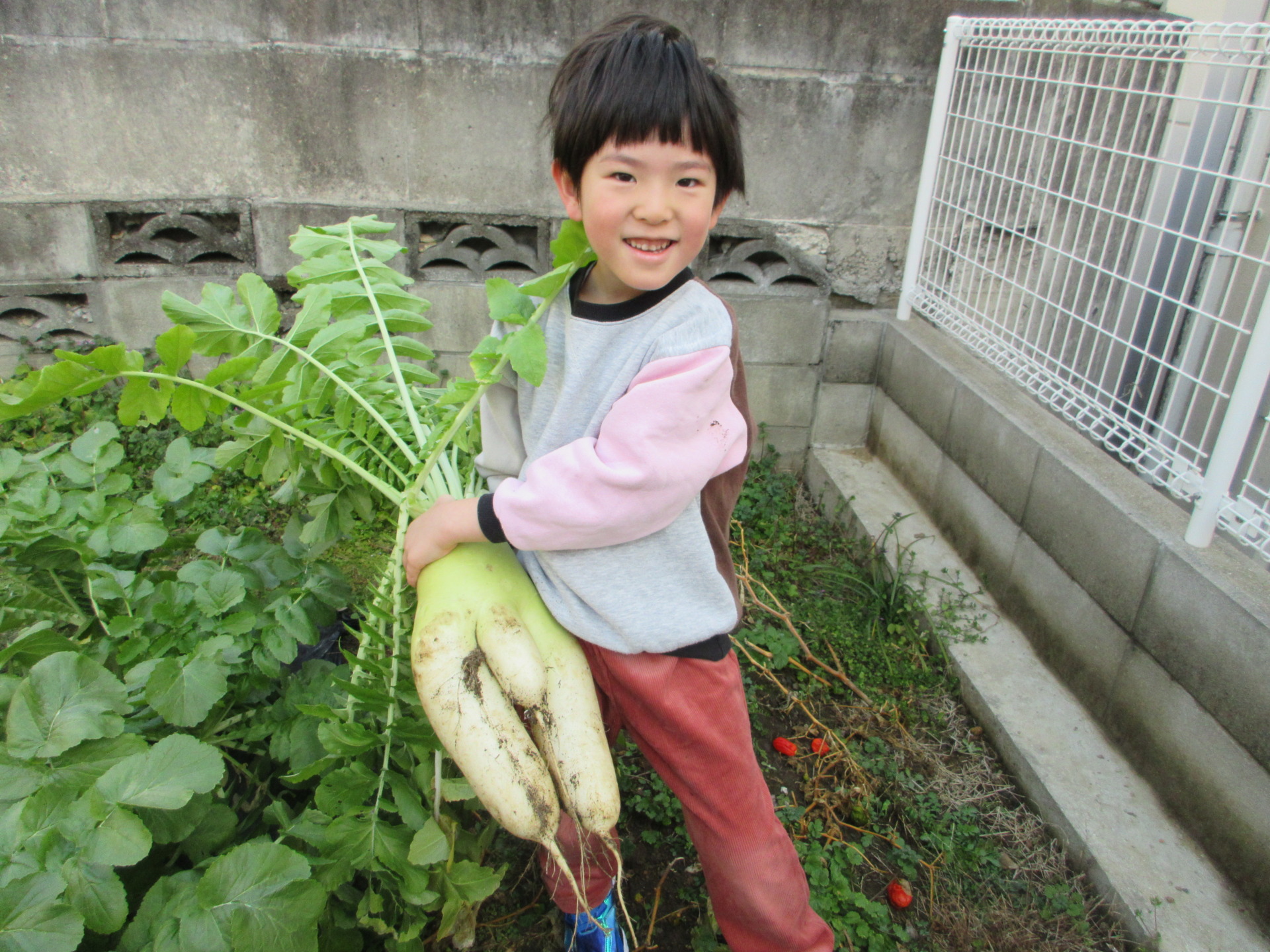 大根の収穫…もも組