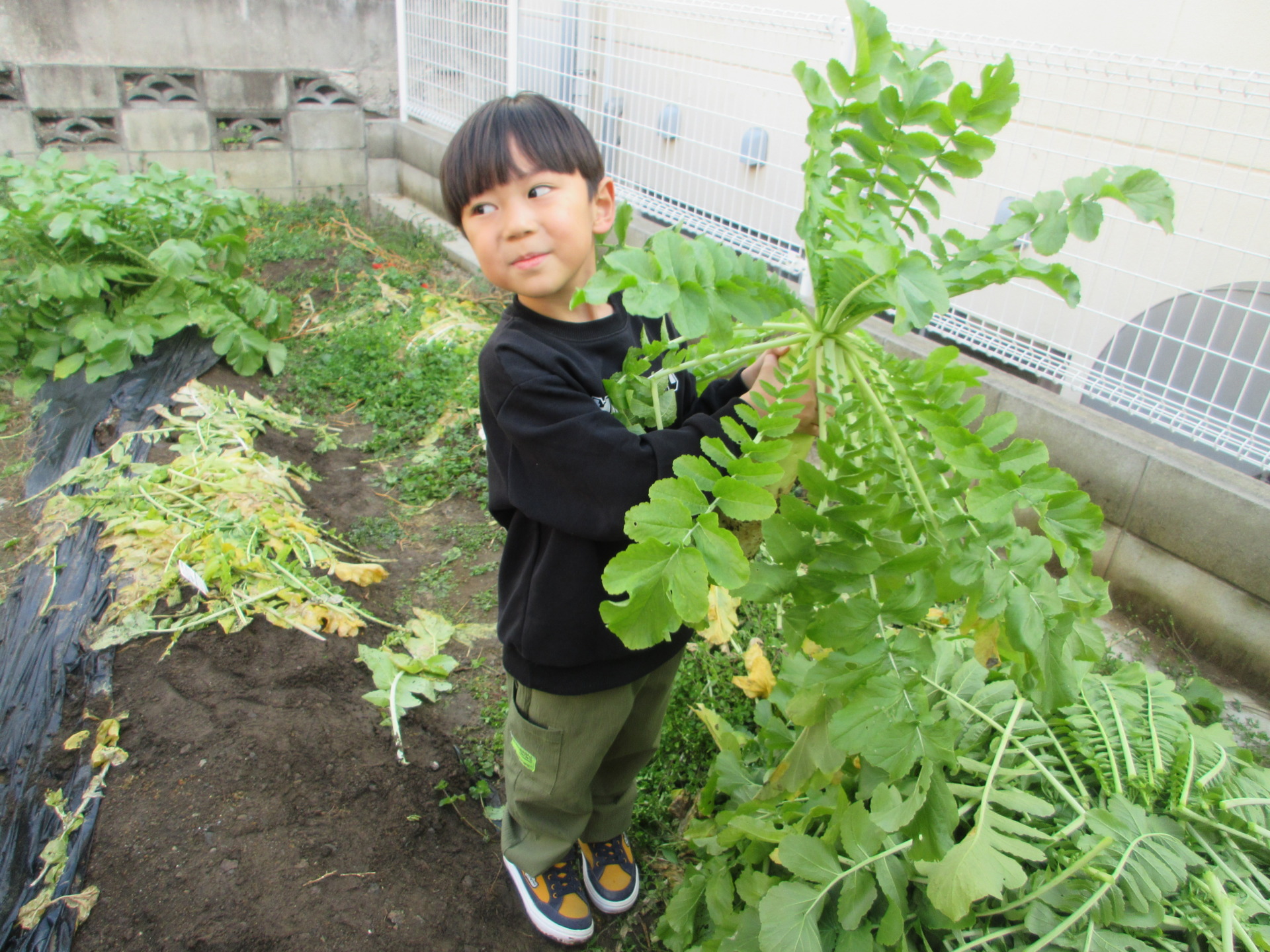大根の収穫…もも組