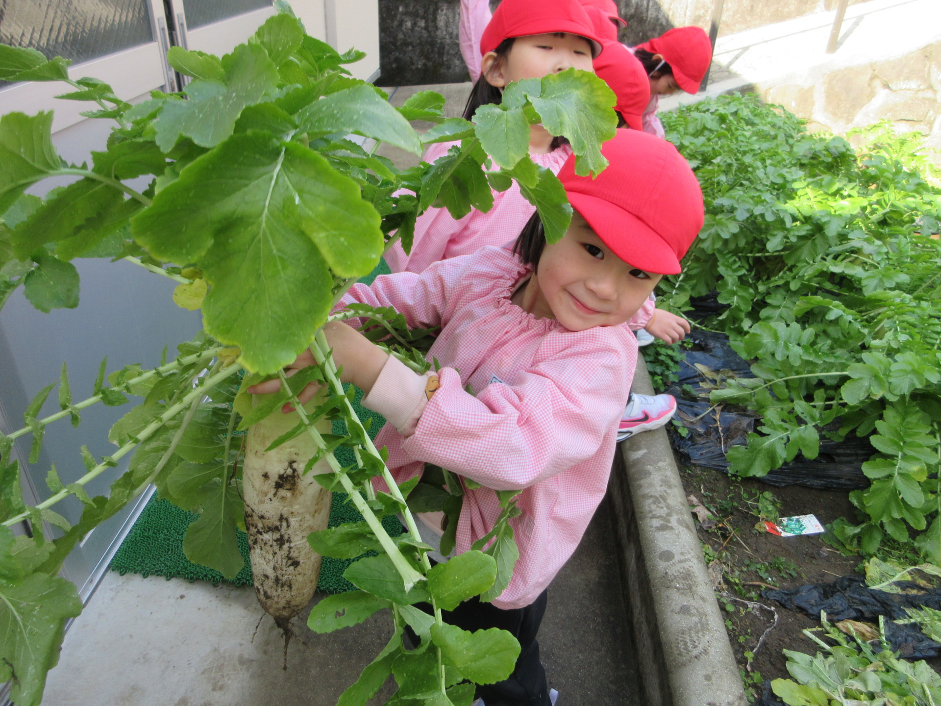 大根の収穫…もも組