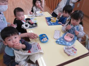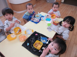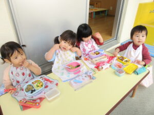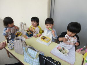 学校法人富士学園 認定こども園 > 最新情報 > 園ブログ > お弁当の日🍱お弁当の日🍱2026年3月24日2026年3月24日園ブログみかん組かられもん組がお別れ遠足に行っているその頃、さくらんぼ組といちご組は駅まで散歩に行って園内でお弁当を食べました😋 いちご組は、お天気が良かったのでテラスで食べました😊 お家の方に作ってもらったお弁当を嬉しそうに食べて「おいしかった~♡」と言っていた子どもたちでした(*^^*)