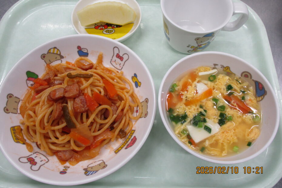 こんにちは🌞 2月10日の給食は ナポリタンスパゲティ,豆腐と卵のスープ,りんご… 続きを読む »❄2月10日・12日の給食❄