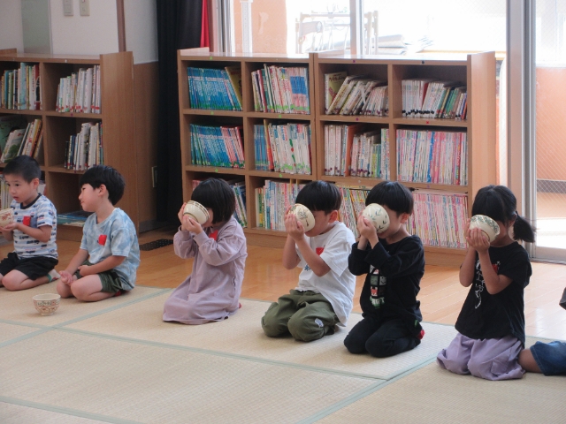 月に一度、「お茶の時間」を設け、礼儀を身につけています。