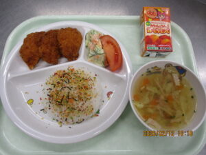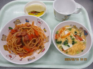 学校法人富士学園 認定こども園 > 最新情報 > 給 食 > ❄2月10日・12日の給食❄❄2月10日・12日の給食❄2026年2月12日2026年2月12日給 食こんにちは🌞 2月10日の給食は ナポリタンスパゲティ,豆腐と卵のスープ,りんご🍎でした❣❣❣ 2月12日の給食は ふりかけご飯,チキンカツ,ポテトサラダ,トマト,キャベツとベーコンのスープ,みかんジュース🍹でした❣❣❣ 本日は誕生会でした✨ 2月生まれの皆さま、おめでとうございます♪♪♪ ~今日のひとこと~ あしたもブログはお休みです・・・すみません😭💦 金曜日の分は土曜日に更新しますのでお待ちください✨