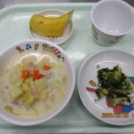 学校法人富士学園 認定こども園 > 最新情報 > 給 食 > ❄2月25日の給食❄❄2月25日の給食❄2026年2月25日2026年2月25日給 食こんにちは🌞 今日の給食は 豆乳コーンチャウダー,ブロッコリーとツナのサラダ,バナナ🍌でした❣❣❣ おやつはチーズ蒸しパンでした🧀 明日は遠足ですね♪ おやつはフルーツポンチを用意して園児たちの帰りを待ちます♪ 楽しんできてくださいね~~~❣❣❣